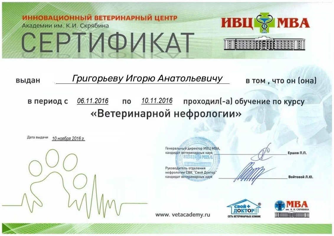 Его работа требует исключительной точности в диагностике и терпения в подборе терапии. Игорь Анатольевич подходит к лечению ХПН как к комплексному управлению состоянием, используя последние рекомендации для продления и улучшения качества жизни питомца, обеспечивая стабильность и комфорт.