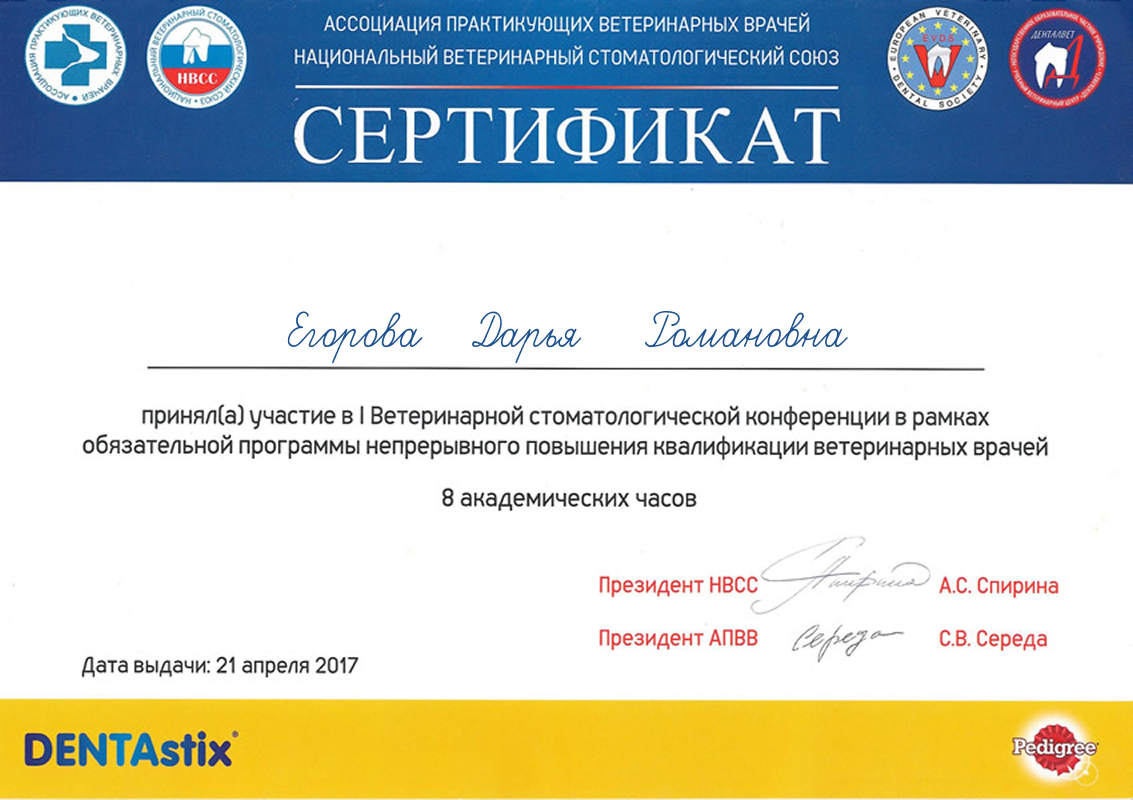 Дарья Романовна — ветеринарный стоматолог, которая считает, что здоровый рот — залог общего здоровья и долголетия. Она специализируется на дентальной рентгенографии, что позволяет ей увидеть проблемы, скрытые под десной (например, резорбция зубов у кошек).